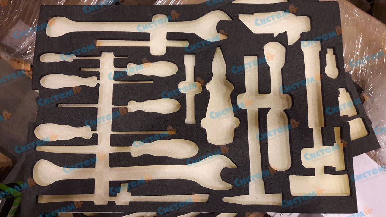 Также материал для подобной упаковки должен быть прост в обработке. Ложемент для инструментов создается таким образом, чтобы каждый элемент набора находился в собственной ячейке, совпадающей с ним по форме. Чтобы этого достичь, необходимо разработать чертеж ложемента со всеми деталями, а после реализовать его на оборудовании с ЧПУ. Это может быть фрезерный станок или аппарат лазерной резки. Оба метода обработки материалов обладают необходимым уровнем аккуратности и точности.