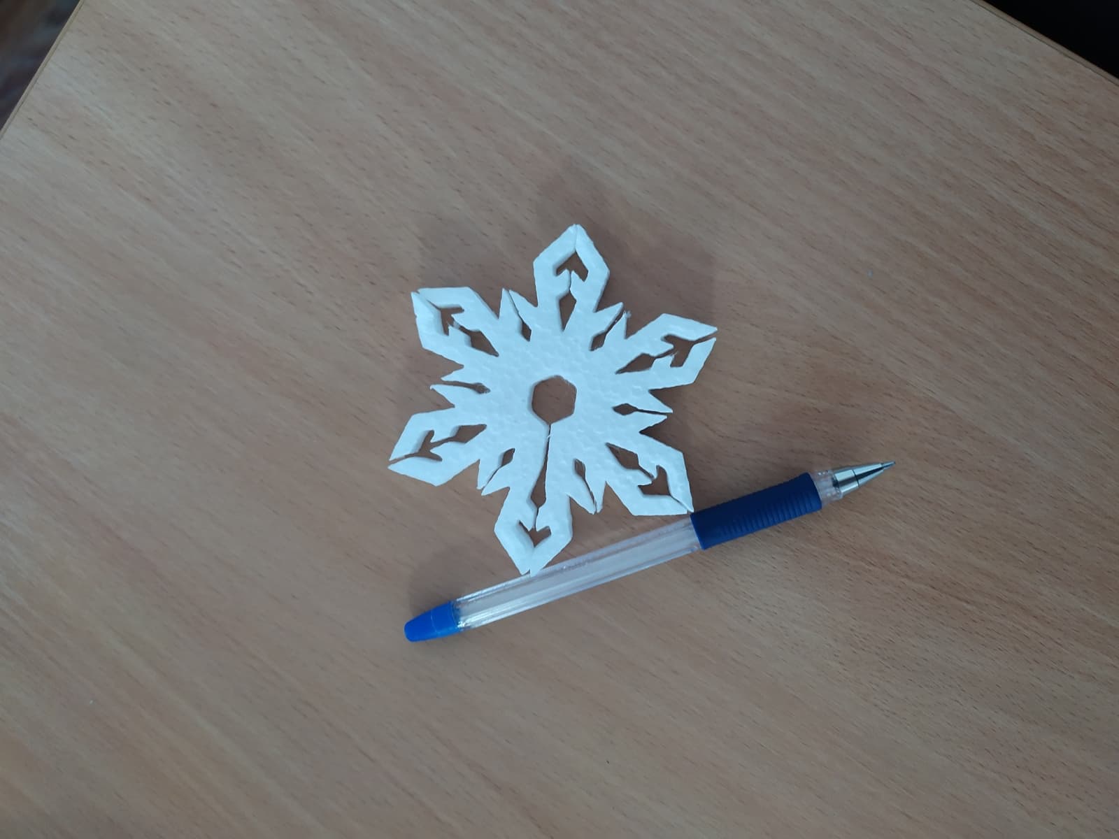 Для изготовления снежинок мы резали пенопластовые листы нихромовой струной на аппарате контурной резки с ЧПУ. Первым делом мы изготовили для клиента тестовый образец каждой снежинки, отравили ему и ждали комментариев. Заказчик остался доволен снежинками и согласовал производство полноценной партии. Мы изготовили заказ, упаковали для безопасной транспортировки и отправили клиенту в оговоренные сроки.